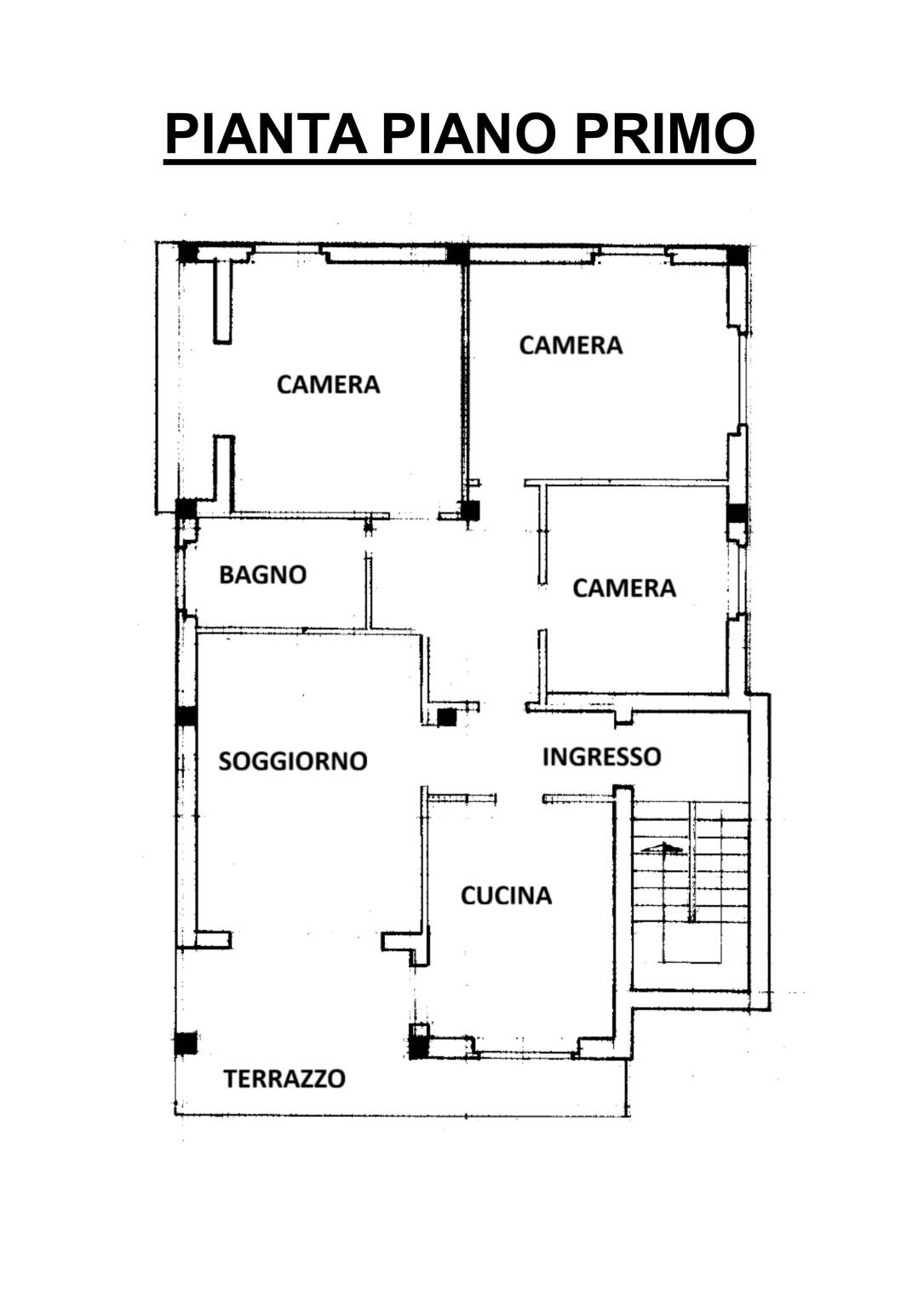 Il piano primo ospita un appartamento spazioso e ben distribuito, composto da cucina abitabile, ampio soggiorno, tre camere da letto, bagno finestrato, grande terrazzo e balcone. Gli ambienti sono luminosi e godono di un'ottima esposizione.