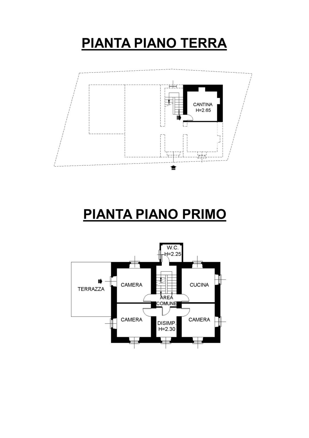 • Primo piano: 4 locali, bagno e ampio terrazzo.