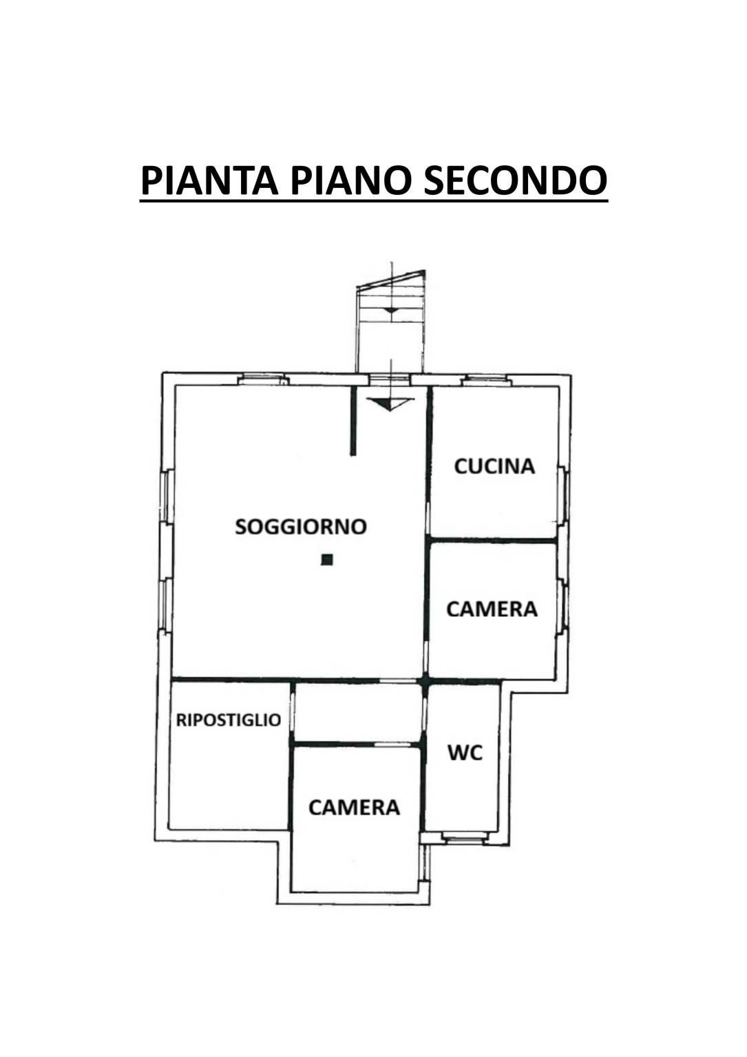 Al secondo piano troviamo un appartamento mansardato, caratterizzato da ambienti accoglienti e ben sfruttati: grande soggiorno, cucina, due camere e un bagno.